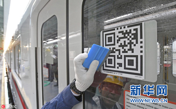 2017年11月24日,日本东京,地铁列车门上的二维码,一旦乘客发现任何异常,可通过扫描二维码来通知地铁工作人员。