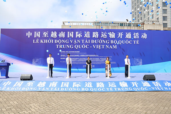 5月14日,中国至越南河内国际道路运输线路开通活动同步在广西南宁、云南昆明举办。上午10点40分,随着发车指令声响,搭载着电子元器件、新鲜蔬菜、百货的运输车队从广西南宁、云南昆明同时发车,向越南河内驶去,标志着中方货运车辆持cbta(大湄公河次区域便利货物及人员跨境运输协定)证件首次入境越南腹地,进一步提升了中越国际道路运输便利化水平。
