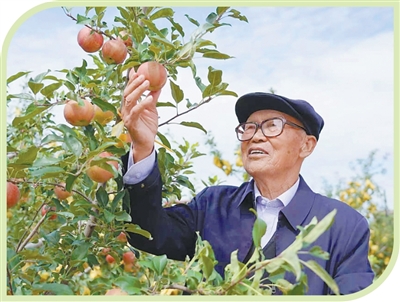 年复一年,沙地里的果树成活率提升至97%以上,树干从手指粗长到碗口粗。2018年秋,果园第一次大面积挂果。张炳贵摘一个咬下去,甘甜果汁淌在嘴里、乐在心里:“15年了,终于等到了这一天!”