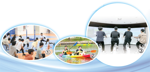 北京大学邱德拔体育馆的智慧健康驿站内,一场充满趣味的数字体育课正在进行。“加油呀,超过他!”伴随着呼喊声,北大光华管理学院学生李皓夫与3名同学正进行划船机比拼。教室前方的大屏幕实时显示着4艘“小船”的运动轨迹,画面中的鳄鱼仿佛也在催促他们加速冲刺。