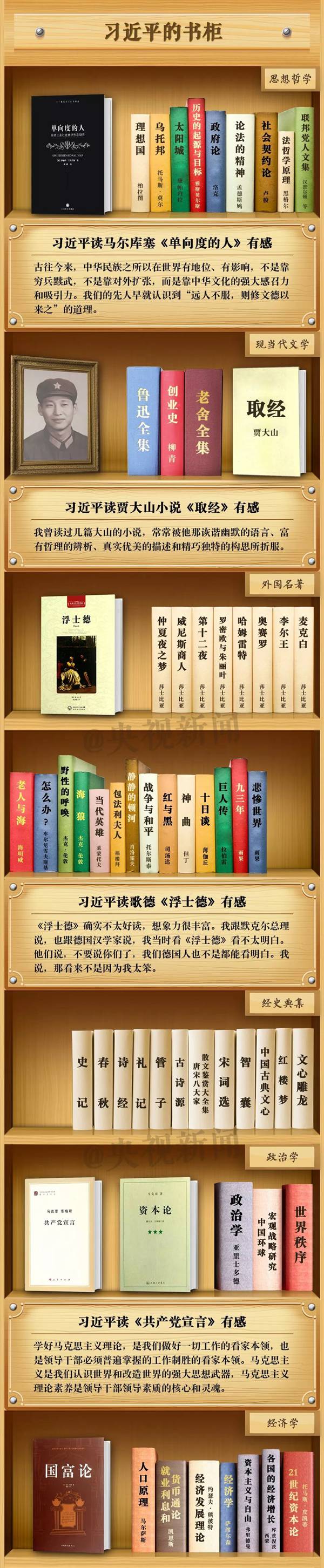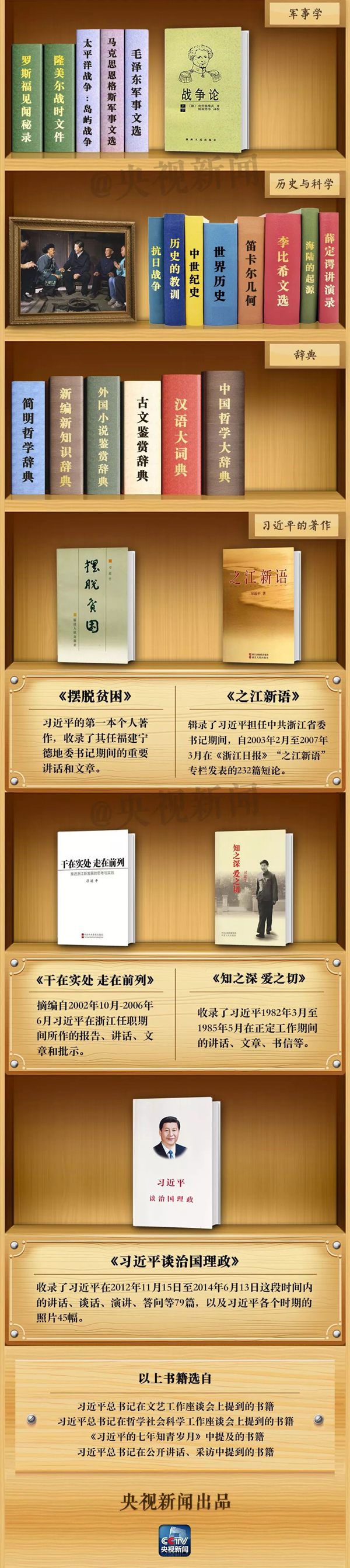 今天,我们定制了习近平总书记的“书柜”,来看看总书记的“书单”和读书感悟吧。