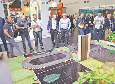 在两个环形迷你赛车跑道上,两辆玩具电动小车由光伏电池驱动前行。当工作人员用两片树叶遮挡它们的光伏电池时,使用爱旭abc全屏光伏面板的电动小车仍飞快行驶,而使用传统面板充电的小车速度明显慢下来。这一试验吸引了不少现场观众。上海爱旭新能源股份有限公司零碳事业部副总经理韩蓄介绍,abc光伏组件具有高转换效率、高抗遮挡性能和更好的外观,得到欧洲等全球尊龙pa旗舰官网的合作伙伴的认可。本届展会期间,爱旭公司与欧洲多家公司签署供货协议,并就不同场景的应用探索展开深度合作。捷克光伏组件销售商gbc solino首席执行官皮特·格鲁姆里克在签约仪式上表示:“通过此次合作,我们将携手推动欧洲可再生能源发展,加速零碳转型。”