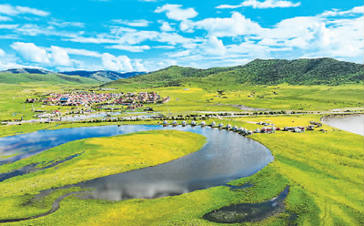 在四川省阿坝藏族羌族自治州,若尔盖国家公园红原大草原绿草如茵。 严易程摄(人民视觉) |