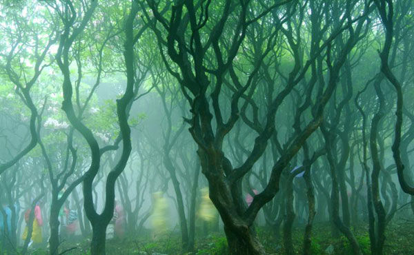 云锦杜鹃古称“娑罗”,属杜鹃花科,为我国特有的稀有珍贵树种。成片成林面积近300亩,而且树龄在200年以上形成古树群,则惟有天台华顶独有,堪称天台山的一大植物奇观。