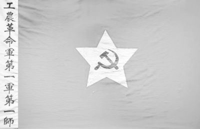 因为没有现成的样子,三人经过反复研究,模仿苏联红军的式样,设计出带有镰刀、斧头、五角星的工农革命军军旗。旗幅为红色,象征革命;中央为白色五角星,象征中国共产党领导;星内嵌有交叉的黑色镰刀、斧头,象征工农大众紧密团结;靠旗杆一侧旗幅缝有白布条,上面用繁体字竖写着“工农革命军第一军第一师”的字样。