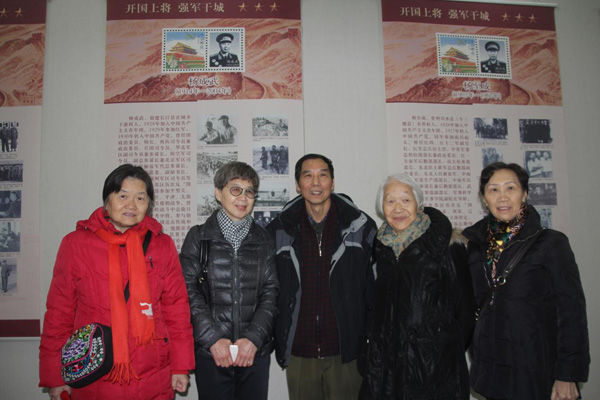 杨成武上将之女(左二)向大家介绍父亲往事后与大家合影留念