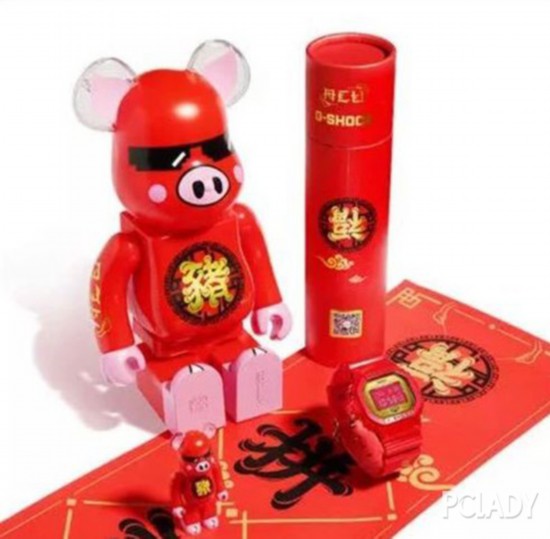 知名潮流店铺acu联手日本玩具品牌medicom toy以及casio g-shock 打造了猪年限量款套装。