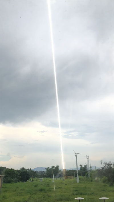 广东从化人工引雷实验基地的一次人工触发闪电(此照片由中国气象科学研究院提供)