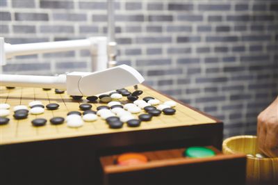 在宁波奇点机器人体验馆,机器人正与一位观众现场围棋“对弈”。