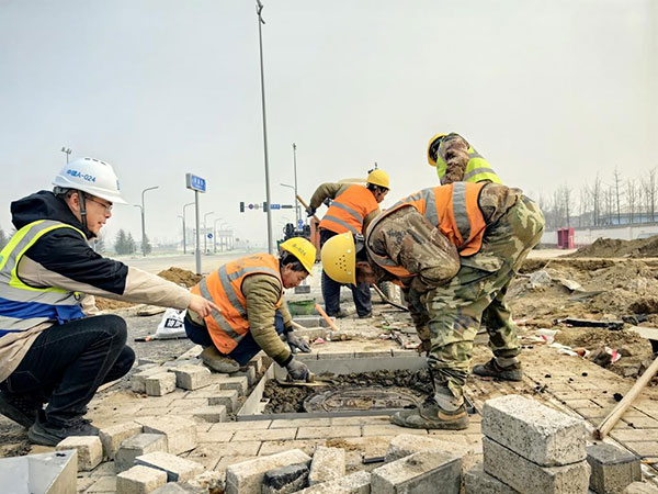 岁末年初,寒风凛冽,为确保项目在元旦后通车,项目质量负责人潘世伟早早来到现场,开展每日一次的现场质量巡查。他围绕所有工作面开展巡视,紧盯完工工序施工质量。元旦假期期间,项目现场管理人员10余人以及30余名工友全员在岗待命,坚守在一线,尽管气温较低,但大家的工作热情仍旧高涨。