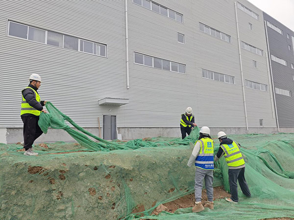 赵迎军和同事们在进行裸土覆盖作业