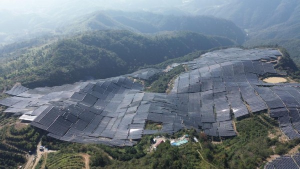 浙江省金华市大盘镇、盘峰乡境内的山地建设光伏场区是建研院第一个柔性支架光伏项目,也是浙江省第一个和最大的全容量并网的山地柔性光伏项目,工程规划容量为100mw,采用茶光互补形式同步发展。项目于2023年12月开工,正在建设中。
