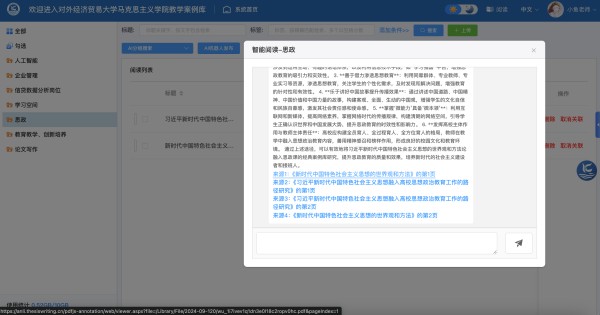 针对传统课堂趣味性不足、学生被动接受及知识理解不深等问题,人工智能赋能下的思政课案例库可以予以有效解决,从而实现课堂效果质变。第一,思政课案例库运用多元模态呈现策略,增强知识讲授趣味性。如讲解长征精神时,利用虚拟场景技术、沙盘模拟等呈现长征跋涉历程,让学生在沉浸式学习中领悟精神;利用数字修复技术还原珍贵文物史料,让学生“走进”博物馆,增强知识吸引力;利用实时直播等技术充分开发案例资源,打造“太空思政”等超前教学实践,提升学生学习兴趣。第二,人工智能助力思政课案例库形成动态双向问答机制,助力学生主动思考。将案例学习与互动问答结合,让学生进行多轮问答体验,激发其思考能力,实现“循循善诱”式教学。这种在文本解读基础上的分布式“超长思维链”技术,使学生的认知路径可视化呈现,推动学生从“被动接受”知识转向“主动获取”知识。此外,人机对话产生观点间“争议”也会引发学生的主动思考。第三,思政课案例库中采用知识图谱技术等可视化工具能够强化学生对思政知识的系统把握。与分主题罗列相比,知识图谱技术将知识进行可视化关联,构建出庞大的知识网络,供学生查看案例与案例、案例与理论、理论与理论之间的关联性。例如,从一个“爱国”主题案例出发,设计知识图谱供学生追溯不同时期人物的爱国事迹、表现形式以及社会主义核心价值观等其他方面的相关案例。