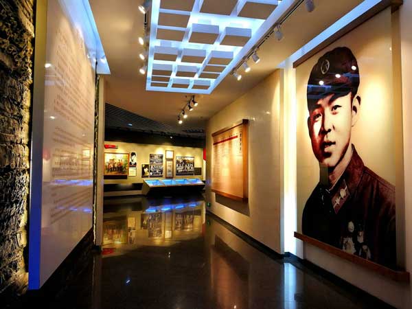 总书记看到的纪念馆第一层展品中,有雷锋小时候读过的书,加入少先队后戴过的红领巾,工作后穿过的工服、用过的修车工具、开过的车,到部队以后穿过的军装、扔过的手榴弹、用过的枪支,还有他填过的登记表、手写的信、纳了千层底的袜子,以及《雷锋日记》影印本等。结合雷锋开过的推土机等实物展品,我们用高科技手段模拟了雷锋在鞍山钢铁公司工作的场景,并运用环幕影片展现出雷锋的精神、信仰的力量;我们还制作了雷锋小时候居住过的茅草屋,真实地还原了旧社会雷锋家中艰苦的生活条件、那个年代雷锋的成长环境。由于雷锋年幼时的很多事件现在已经无迹可寻,他有许多好事是在休假期间、出差路上、执行任务途中做的,这些都没能拍成照片留存,所以我们根据雷锋的事迹绘制了一些油画、素描、漫画等,比如雷锋与亲人之间的故事、上学时帮助同学的故事、雨夜送大嫂的故事、抢救水泥的故事,以及“出差一千里,好事做了一火车”的故事等。