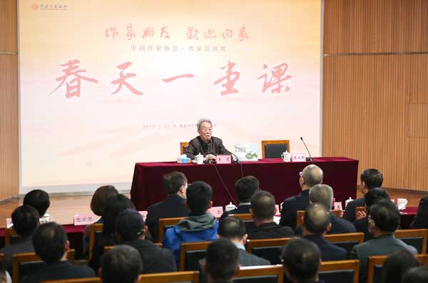 这堂课开创了两个“第一”:“作家活动周”第一讲,“鲁院大讲堂”第一讲。中国作协党组书记、副主席张宏森以及吴义勤、邱华栋、邓凯等书记处同志来到现场,与36位来自基层的作家共同聆听了“春天一堂课”。