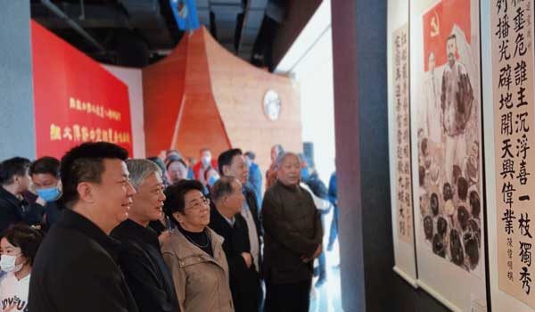 4月1日上午,“致敬中国共产党人精神谱系”继火传薪·中堂联墨画作品展在天津市少年宫开幕。天津市关工委常务副主任、市延安精神研究会会长李润兰,中共天津市红桥区委副书记靳凡,天津市文联党组副书记、专职副主席施琪出席活动并致辞。中国楹联学会会长李培隽,中国楹联学会名誉会长蒋有泉,北京卫戍区原政委孙本胜,总后工程兵学院原政委孙之贵,共青团天津市委副书记李想等政界、军界、文化界名家百余人出席活动。