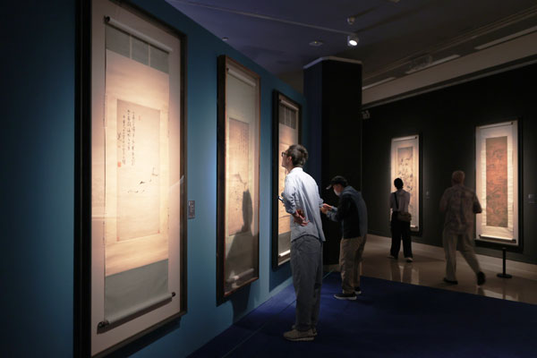 成人也能在这里寻到心的归处。八大山人和石涛,这两位明王朝落魄皇族后裔画家才气逼人,成就了中国绘画史上双峰并峙的传奇,后世画家受二位影响者不计其数。五层展览是八大山人和石涛作品专场,前来参观者络绎不绝。一位40岁上下、看起来有着书卷气的男士,刚刚看完五层作品就立刻来到通往四层的步道坐下,展开画本迅速默画心仪的画作。他屏息凝神,手中的画笔快速游走,身边穿梭的人群仿佛对他全然没有影响。