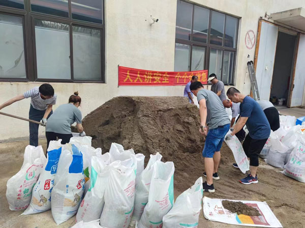 13名职工及家属返岗就位,刘林胜为大家做好具体分工,密切关注库房园区防洪措施落实和积水排涝情况,在库房多个入口处加强防汛物资和人力准备,连夜增装沙袋,开展排涝作业,紧张有序,忙而不乱。