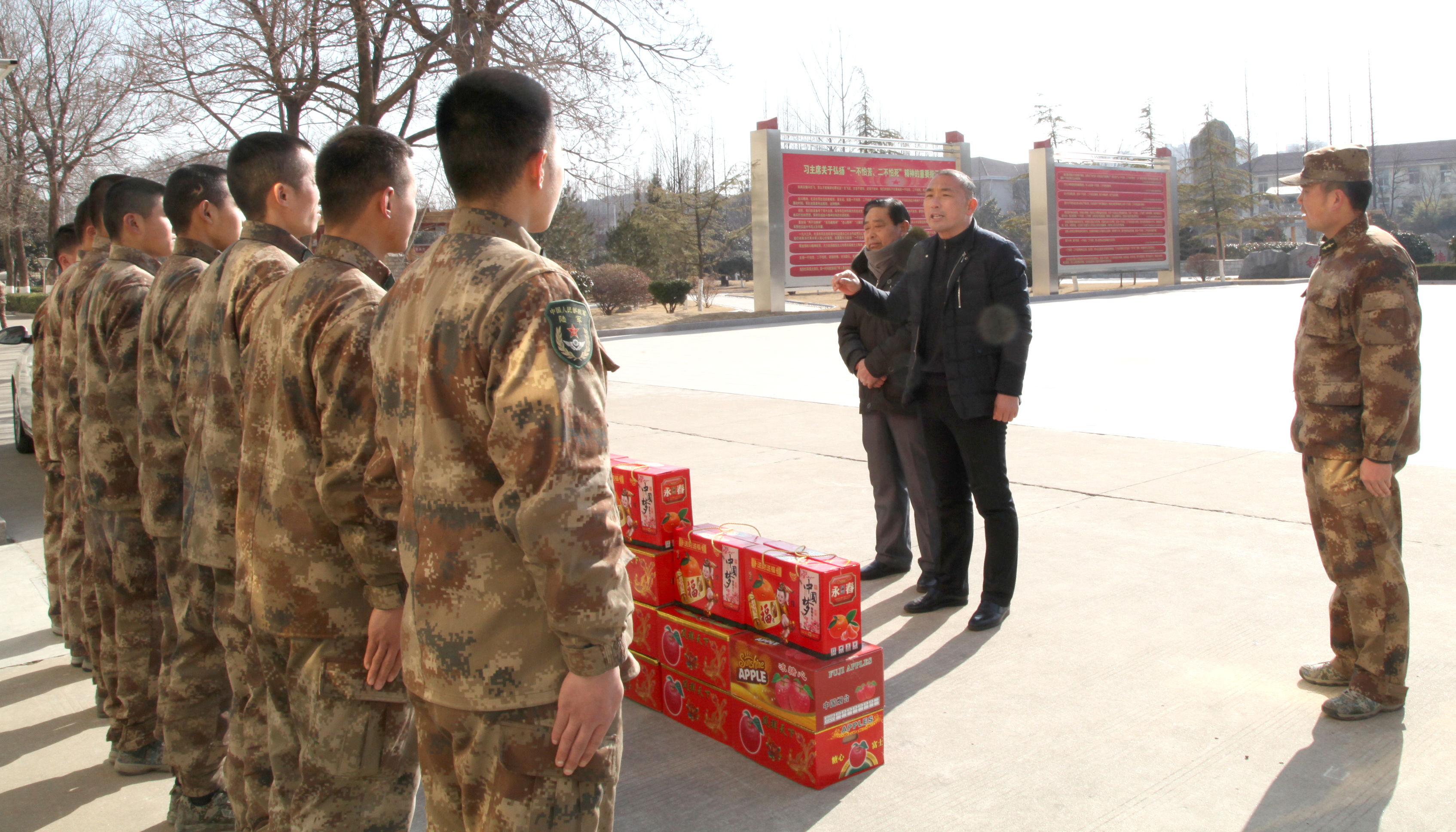 1月3日,全国拥军模范、中国公益慈善形象大使、徐州市关心国防十佳公民、王杰精神研究会会长汪春恩携邳州市王杰中学校长宋端凯带着书籍、御寒保暖内衣、苹果、橘子等春节慰问品和邳州190万人民对子弟兵的深情厚谊及新春的祝福来到徐州71集团军王杰部队,冒着零下10多摄氏度的严寒,迎风踏雪慰问正在数九寒冬集训的王杰连和王杰班的官兵,隆冬的军营朔气逼人、冷风刺骨、但训练场上一派热火朝天的训练场面感动着汪春恩一行,汪春恩勉励战士:你们战风雪、斗严寒,穿行训练场我很受感动。狗年春节来临之际祝新大家新年快乐、阖家幸福安康。并向王杰连的官兵致以新春的祝福。先后参观了习近平总书记刚刚视察过的王杰连荣誉室和王杰班内务并和战士啦家常话训练,嫣然形成了军民鱼水一家亲的浓厚氛围。