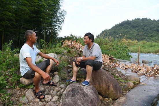图说:胡建文(右)被称为“鸭司令”,图片来源为舜华鸭业官微