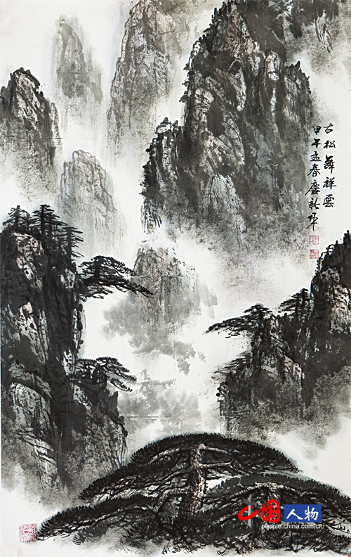 为更好地表现泰山神韵,已是天命之年的李庆新坚持步行进山采风,体味民俗,即便是雷电交加、风雨侵袭也不例外。一次进山遇到暴雨,李庆新躲在废弃的小屋里,只见风雨中的泰山气势磅礴、蔚为壮观。震撼之余,提笔将其记入画中。此刻他只是画家,早已把险境抛在身后。