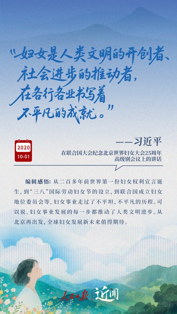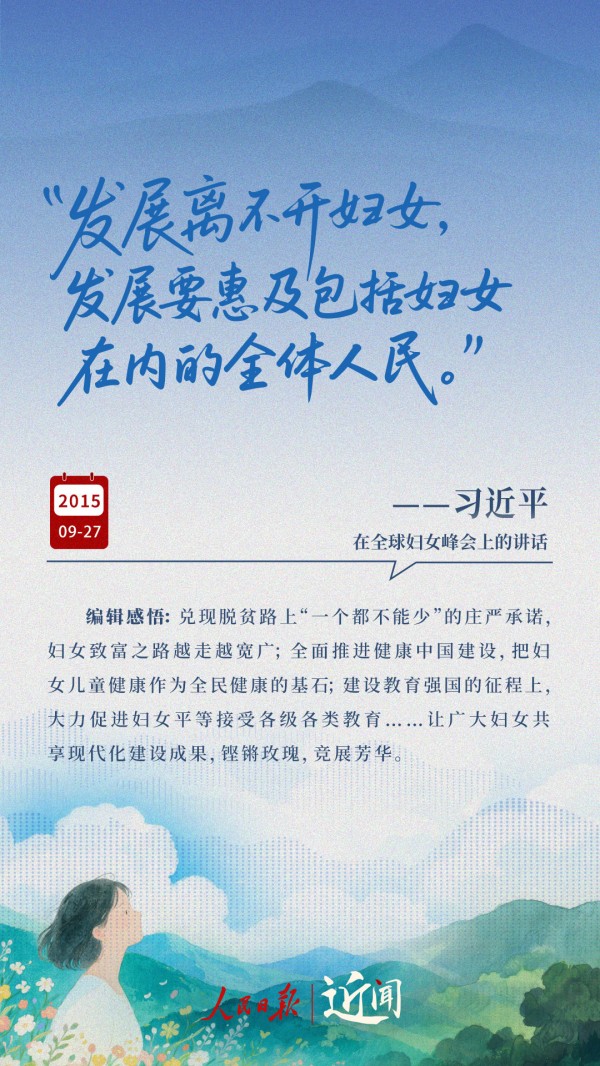 “妇女能顶半边天。这句话说得何等豪迈啊!”“新征程上,每一位妇女都是主角,都享有人生出彩的机会。”“让每个妇女和儿童都沐浴在幸福安宁的阳光里。”一次次暖心寄语,饱含着习近平总书记对妇女全面发展的关心关怀。
