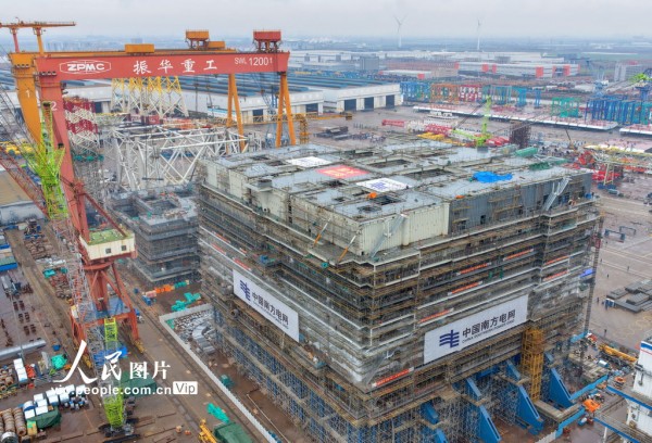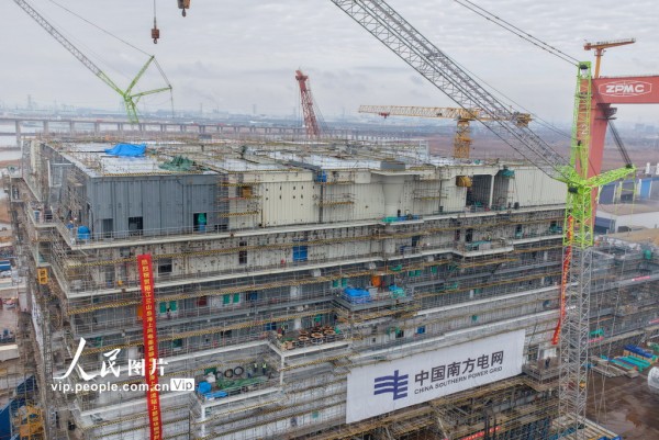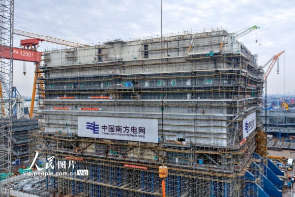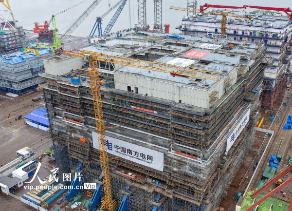 该项目是国内首个海陆一体海上风电柔性直流输电工程,建成后将通过先进的柔性直流技术,为粤港澳大湾区绿色低碳发展注入新动能。许丛军摄(人民图片网)