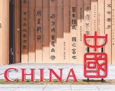 中国馆外形如绵延的中华书简,诗词名句墨舞翩跹,馆内墨池竹林,园林景观宁静致远。展品包括“蛟龙”号深潜体验舱、新一代人形机器人,以及以二十四节气为主题的大型多媒体动态影像和数字化动态长卷《耕织图》,中华优秀传统文化与中国现代科技成就交相辉映。