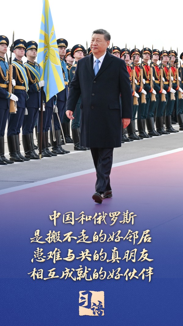 “面对变乱交织的国际形势,中俄两国要坚定秉持永久睦邻友好、全面战略协作、互利合作共赢精神,风雨同渡、关山共越,全面提升中俄关系的高度、维度、韧度,为世界和平和安全注入更多稳定性,为全球发展繁荣提供更强推动力。”当地时间5月8日,习近平在同俄罗斯总统普京共同会见记者时指出。