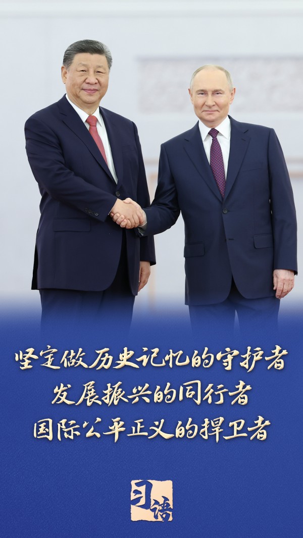 “80年后的今天,我们要采取一切必要措施,坚决维护自身主权、安全、发展利益,坚定做历史记忆的守护者、发展振兴的同行者、国际公平正义的捍卫者,携手为人类前途命运争取更加光明的未来。”