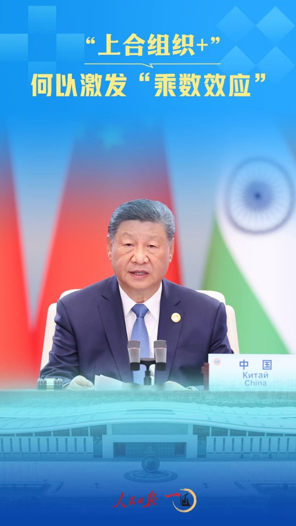 “上合组织 ”,一个加号,一纵一横,交汇于同一种追求、勾勒出同一个愿景:“让推进全球治理体系变革、推动构建人类命运共同体的成果更多更好造福全人类!”