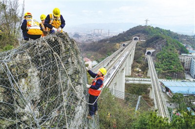中国铁路成都局集团有限公司贵阳高铁工务段辖区内高铁穿梭于喀斯特地貌间,沿线石山遍布,上山搜山扫危是该段工作人员的重要工作。