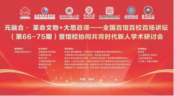 10月27日至29日,“元融合·革命文物 大思政课——全国百馆百校百场讲坛(第66-75期)暨馆校协同共育时代新人学术研讨会”在江西师范大学召开。来自全国23个省(自治区、直辖市)革命纪念馆、高校的100多位专家学者参加交流研讨。